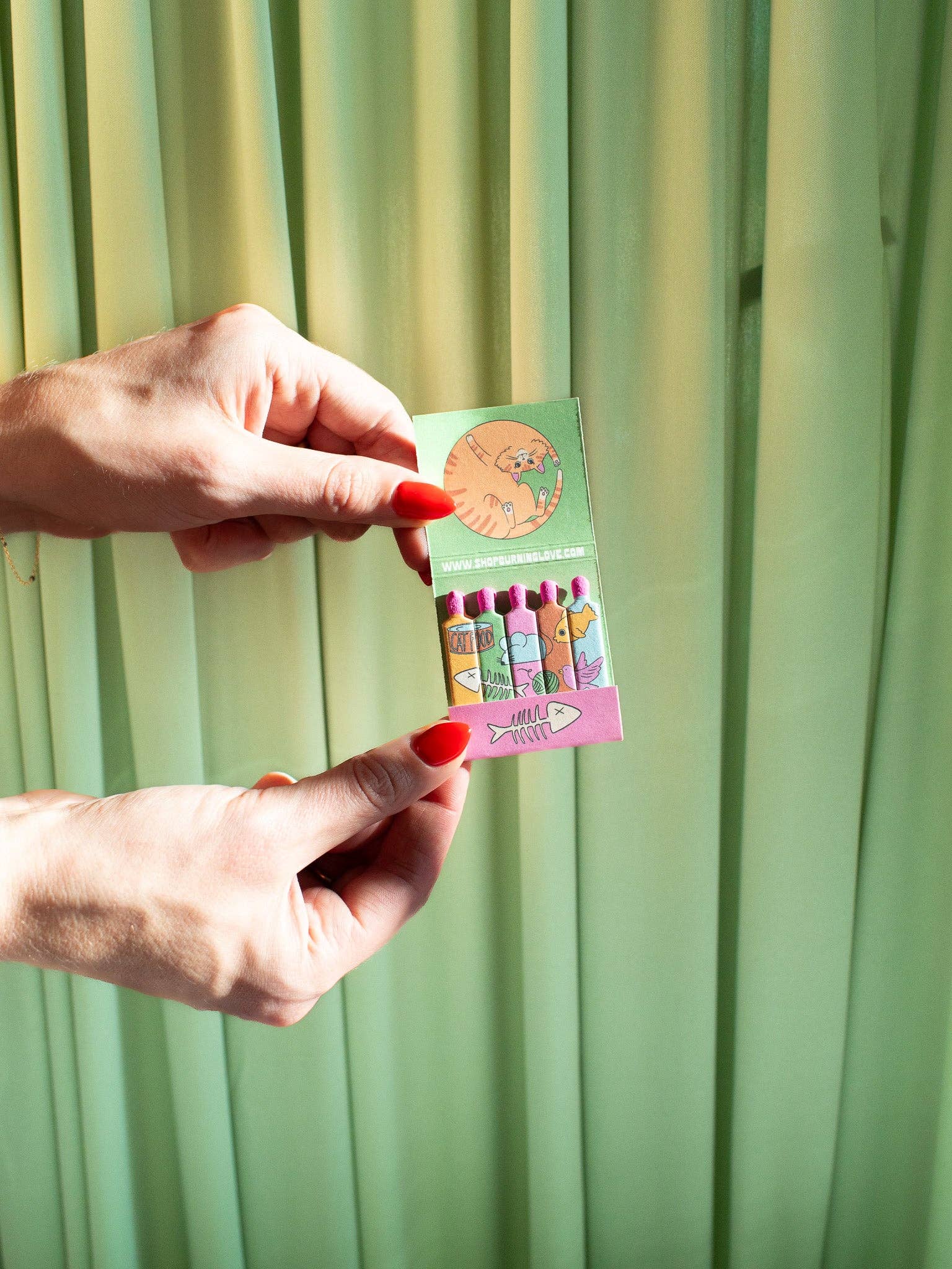 Just. Look. At. How. CUTE! Adorable cat illustrations cover this matchbook, inside and out, even on the matches themselves! Comes with 10 matches. Drawn by the talented Claire Shadomy!