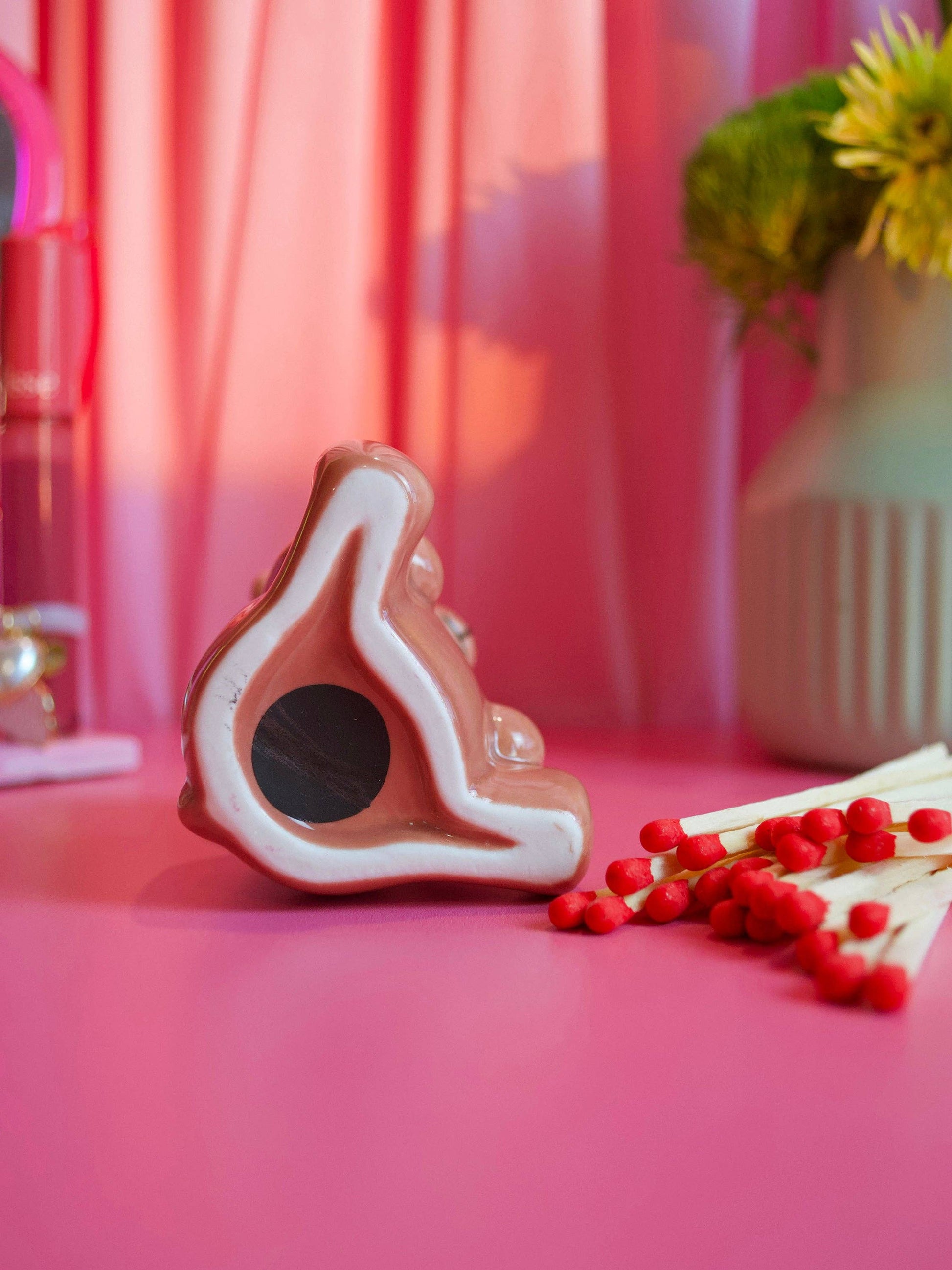 This striker is shaped like the cutest little bear you've ever seen! Comes with 25 matches measuring 3.75" each, stored conveniently inside the bear! When you need a light, tilt it over and strike a match on the base! Looks great on a desk, coffee table, shelf, etc! Also makes a cute tiny vase for tiny flowers :)